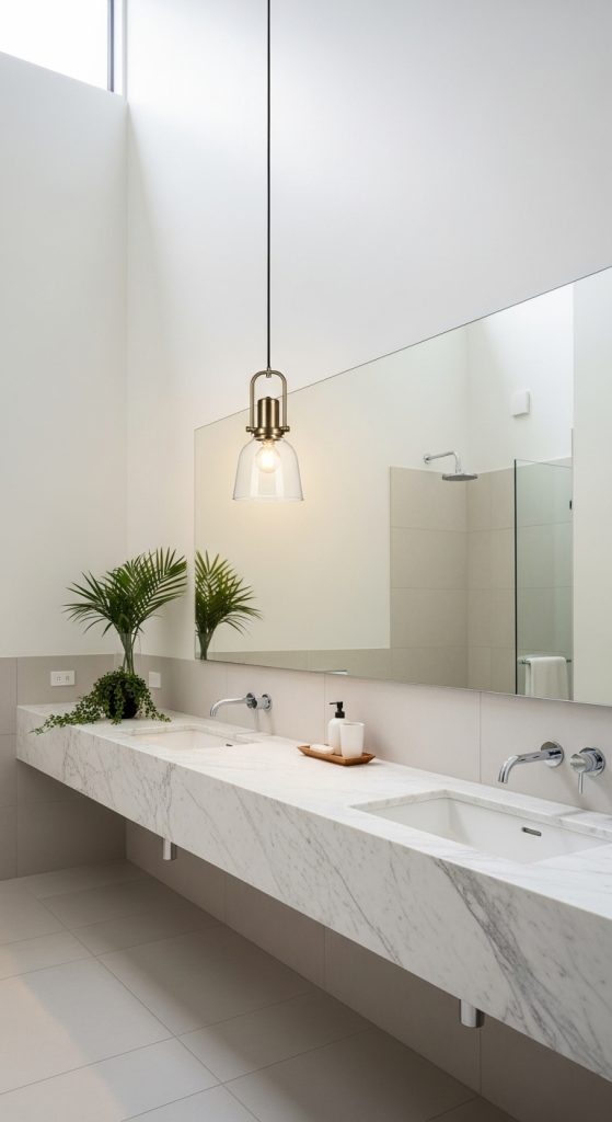Pendant lights aren’t just for kitchens or dining rooms—they can also make a striking statement in a bathroom. Hanging a stylish pendant light over the vanity or in the center of a spacious bathroom adds visual interest while providing functional lighting. Choose a fixture that complements your bathroom’s color palette and design style. Glass, metal, or even ceramic pendants can create a modern, rustic, or eclectic vibe depending on your preference.