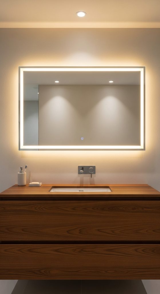 Backlit mirrors combine functionality and style. These mirrors have integrated lighting behind the glass, casting a soft glow that enhances visibility and reduces shadows. They are perfect for modern bathrooms and work well in minimalistic designs. Backlit mirrors also create a luxurious, spa-like atmosphere, making your bathroom feel like a personal retreat. Many models come with adjustable brightness settings for added convenience.