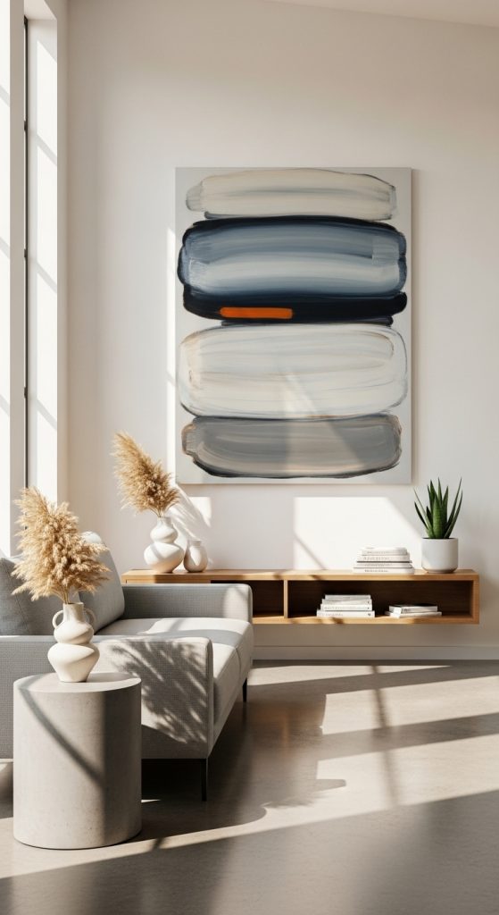Large statement art pieces can serve as the focal point of a room. This could be an oversized painting, abstract canvas, or a bold photograph. Statement wall art works particularly well in minimalist spaces where fewer elements are present, allowing the artwork to truly shine. Choose pieces that reflect your personality—calming landscapes, vibrant abstracts, or modern geometric designs.