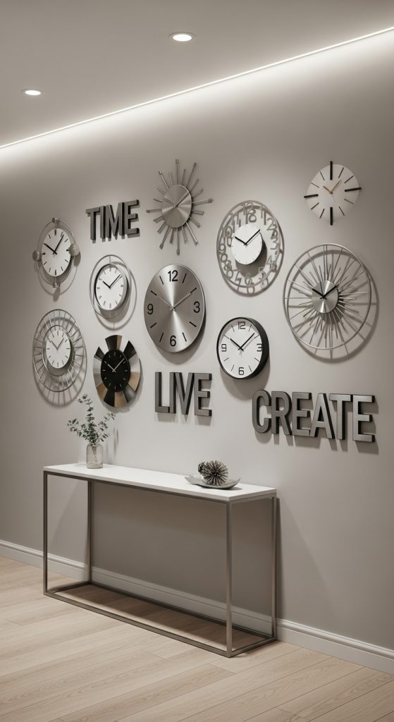9. Functional Décor with Clocks and Typography