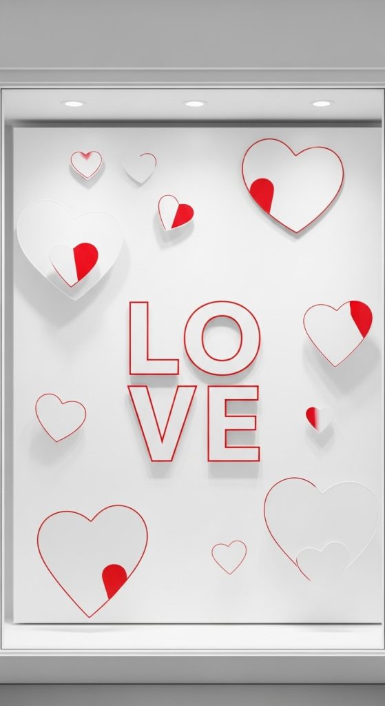 For brands with a clean, contemporary identity, a minimalist Valentine’s display can feel refreshing. Focus on a limited color palette—perhaps white, nude, and a single accent color like red or gold. Use simple heart outlines, abstract shapes, or bold typography with short love quotes. Negative space is your friend here; it allows products to stand out while still delivering a Valentine’s message. This style appeals strongly to younger, design-conscious shoppers.