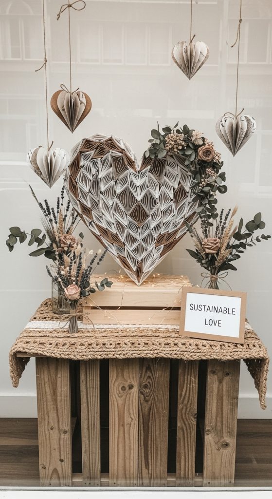 Eco-conscious shoppers appreciate brands that reflect their values. A sustainable Valentine’s window display can feature recycled materials, paper hearts, dried flowers, and neutral earthy tones. Focus on messages of lasting love, self-love, and caring for the planet. This concept not only celebrates Valentine’s Day but also reinforces brand ethics and responsibility.