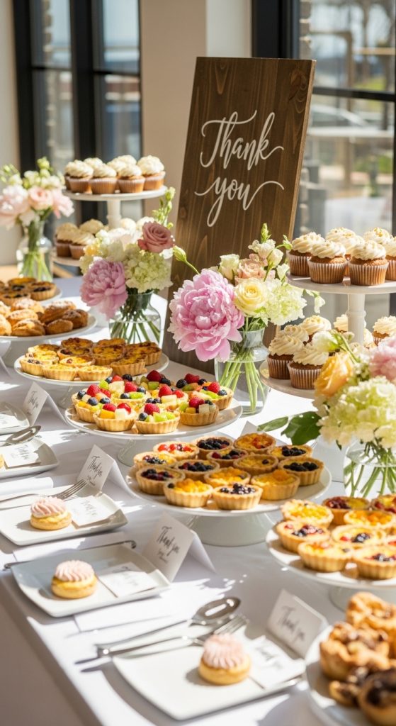 If you want something relaxed yet elegant, host an appreciation brunch or dessert-focused shower. Set up a beautiful food spread and include small signage with thank-you quotes. During the event, take a moment for guests to verbally express appreciation or read notes aloud.