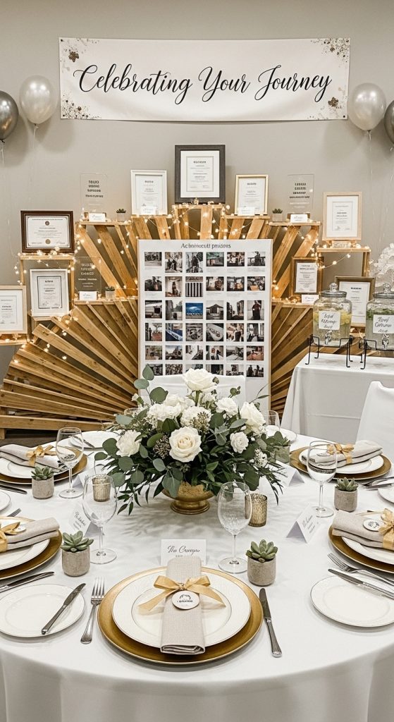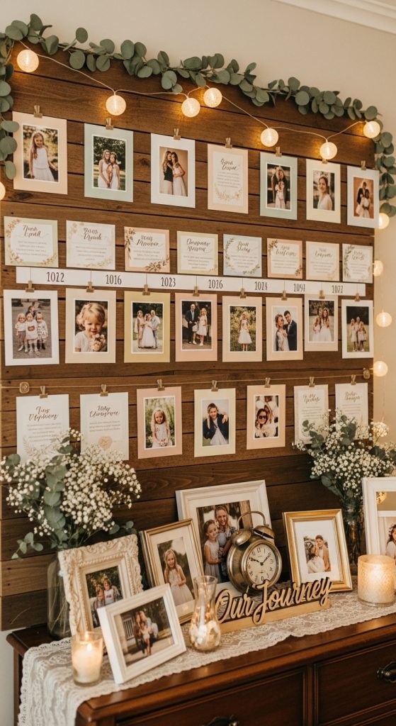 A Memory Lane shower focuses on shared experiences and meaningful moments. Create a timeline wall showcasing photos, milestones, and achievements related to the guest of honor. Each guest can contribute a memory or story, either written or shared aloud during the event.