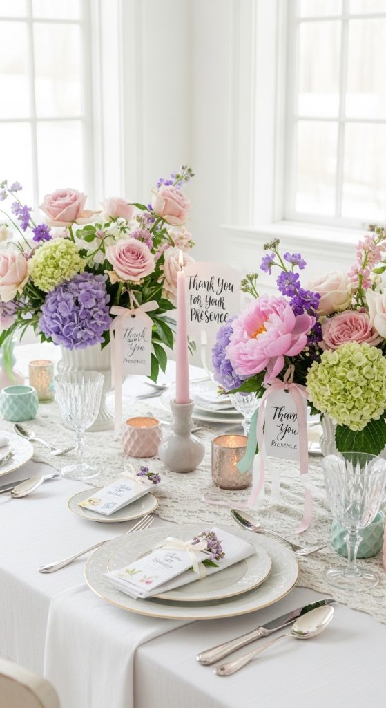Flowers symbolize admiration, respect, and gratitude, making them ideal for an appreciation shower. Use fresh or faux floral arrangements in soft, uplifting colors like blush, cream, lavender, or sunflower yellow. You can also ask each guest to bring a single flower with a note explaining why they appreciate the honoree. When combined into one bouquet, it becomes a powerful visual representation of collective gratitude.