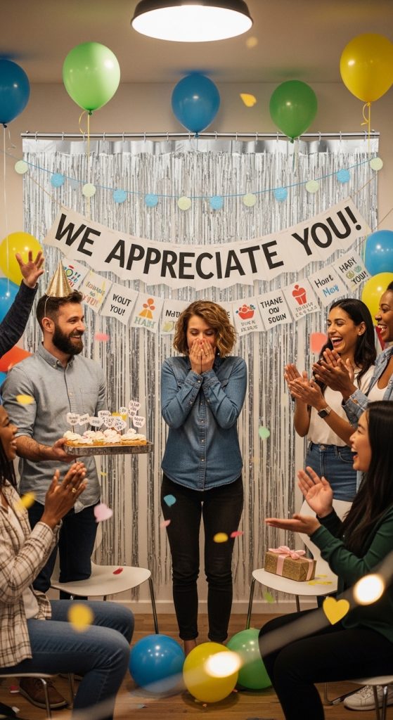 A gratitude-themed appreciation shower sets the tone right from the start. Decorate the space with words like thankful, grateful, and appreciated displayed on banners, table cards, or wall art. Encourage guests to write short gratitude notes sharing what they admire most about the honoree. These notes can be collected in a keepsake box or scrapbook as a lasting reminder of how much they are appreciated.