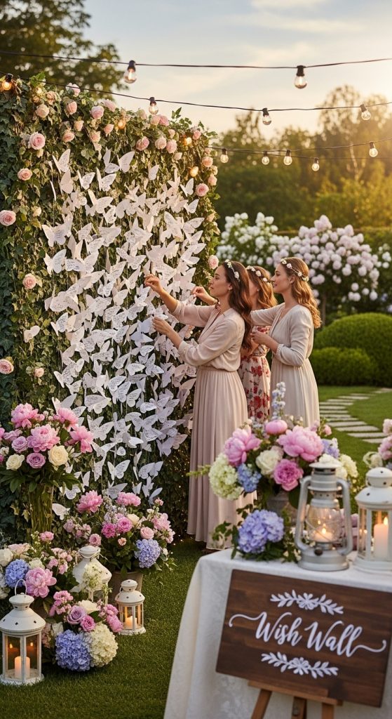 End the celebration with a meaningful moment. Guests can write wishes for the bride on paper butterflies and hang them on a decorative wish wall.
