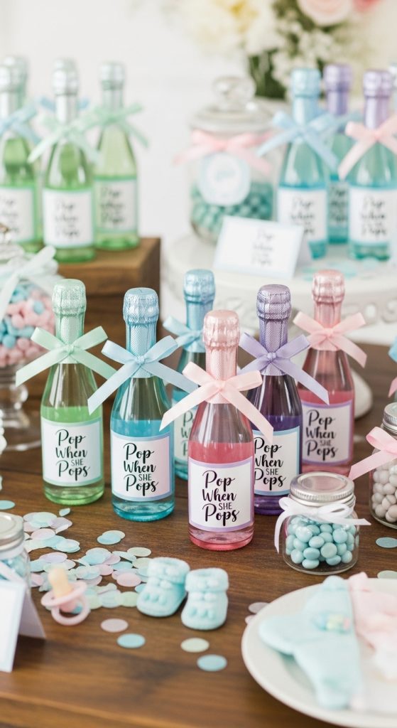 Party favors make guests feel appreciated, and this idea is both fun and meaningful. Give guests small bottles of sparkling juice, soda, or mini champagne-style bottles labeled “Pop When She Pops.”