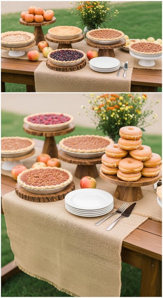 Add a burlap table runner and small chalkboard labels for each dessert. This setup becomes one of the most photographed spots at the party.