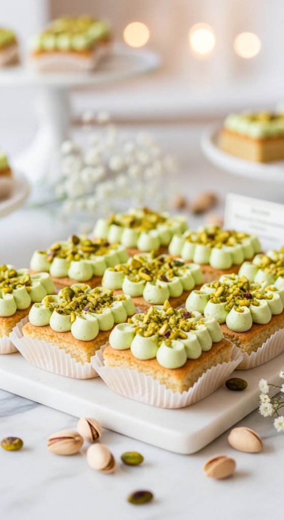 For a unique flavor, pistachio cookie bars bring a nutty sweetness and natural green color. The cookie base is flavored with pistachio pudding mix or crushed pistachios.