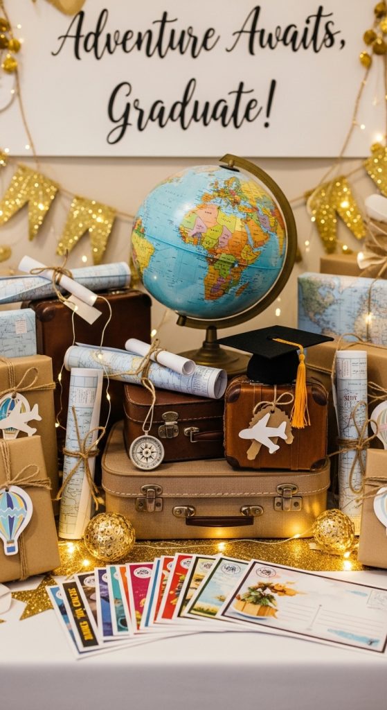 9. Travel-Themed Graduation Table 🌍