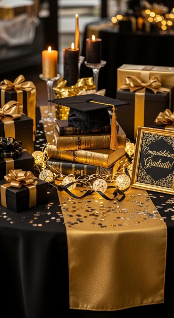 3. Elegant Gold and Black Graduation Display ✨