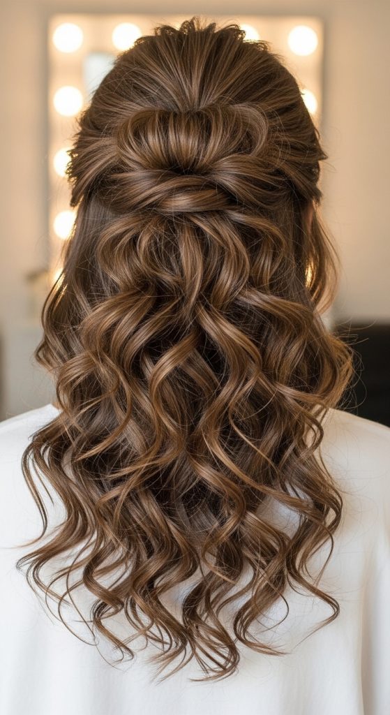 This hairstyle combines the best of both worlds. The top half of the hair is pulled into a ponytail, bun, or puff, while the rest flows naturally.