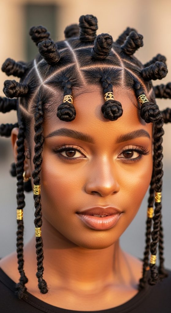 Bantu knots are both a hairstyle and a curl-forming technique. Small sections of hair are twisted and wrapped into mini knots across the head. The knots themselves create a bold style, and when taken down, they reveal beautiful curls.