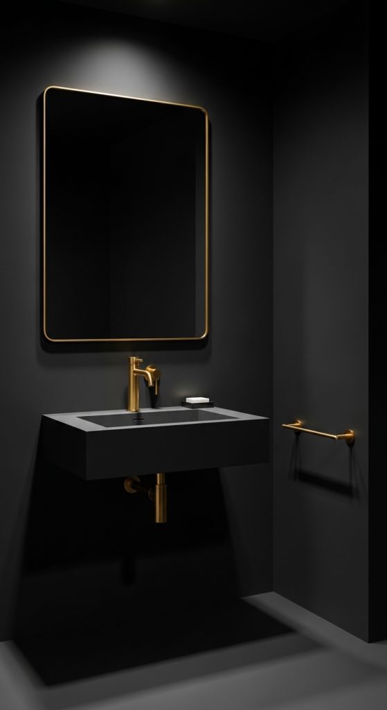 For a bold and modern aesthetic, combine matte black surfaces with gold fixtures. Black walls or cabinets create a dramatic backdrop, while gold elements add warmth and shine.