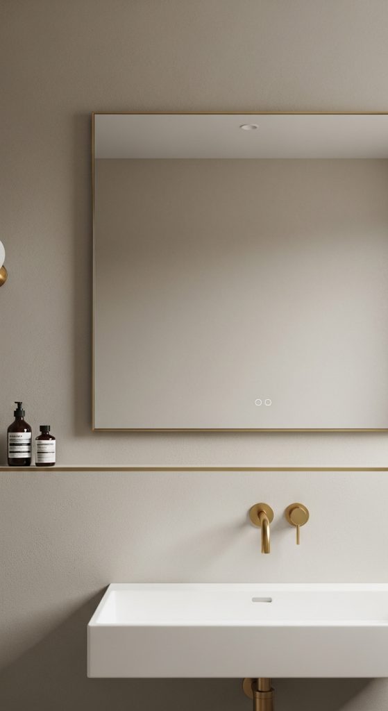 Slim gold faucets, frameless mirrors with gold edges, and subtle lighting fixtures can add just the right amount of sophistication without cluttering the space.