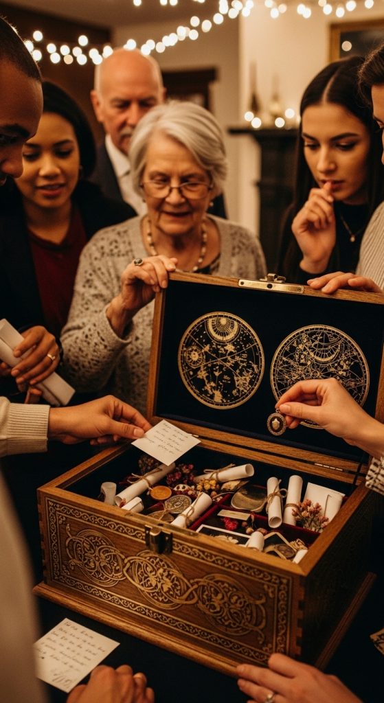 Ask guests to bring small items, notes, or predictions about the future. During the party, everyone places their contributions into a time capsule box. The twist? Guests must explain their item in a creative or humorous way. The capsule can be opened years later, making it a meaningful activity.