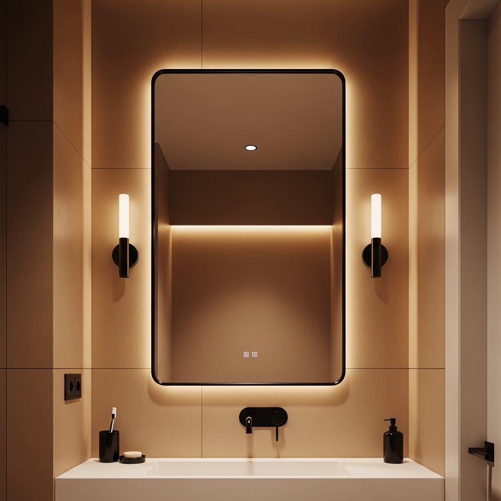 Use a large mirror with a black frame to reflect light and create the illusion of a bigger room. Mirrors not only enhance brightness but also amplify the elegance of your black and tan palette.
