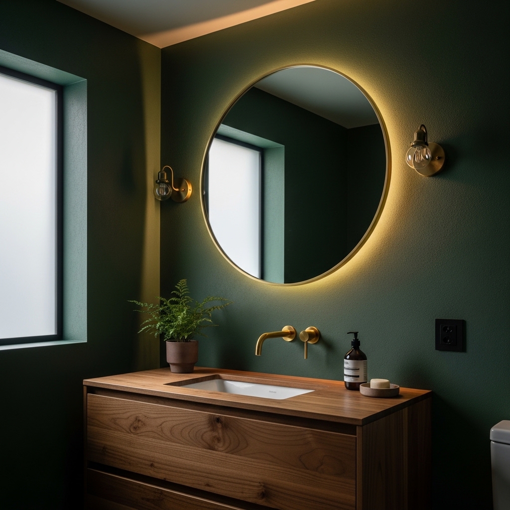 Pair green walls with wooden elements and gold fixtures for a rich, earthy look that feels both elegant and grounded.