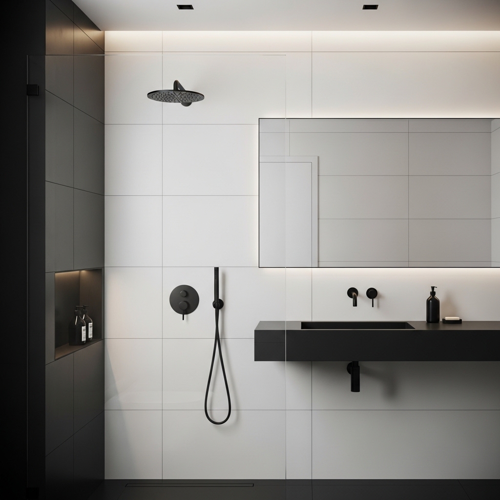 Nothing sets the tone for a moody bathroom like matte black walls. This bold choice creates depth and instantly makes your bathroom feel more intimate and luxurious. Matte finishes absorb light rather than reflect it, which enhances the overall dramatic effect.