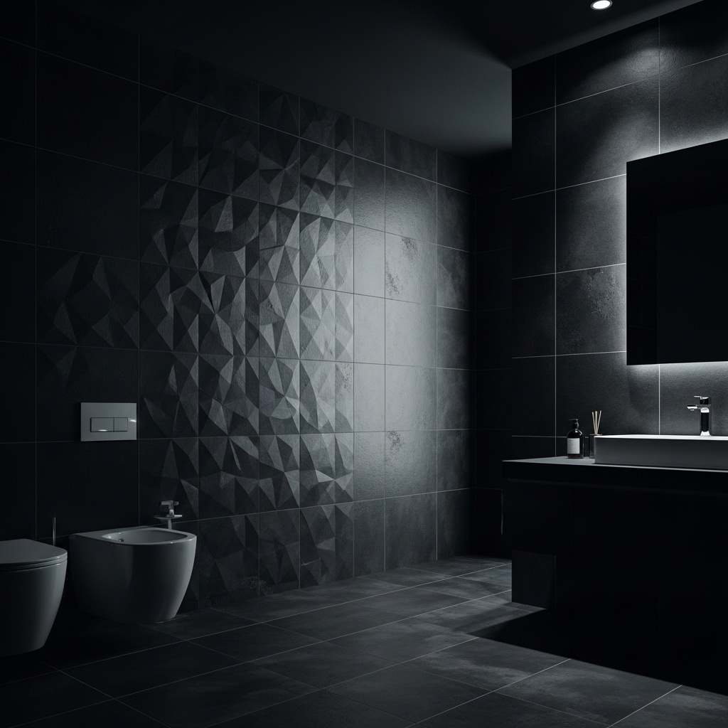 3D tiles or patterned surfaces can catch light in interesting ways, enhancing the overall visual appeal of the bathroom.