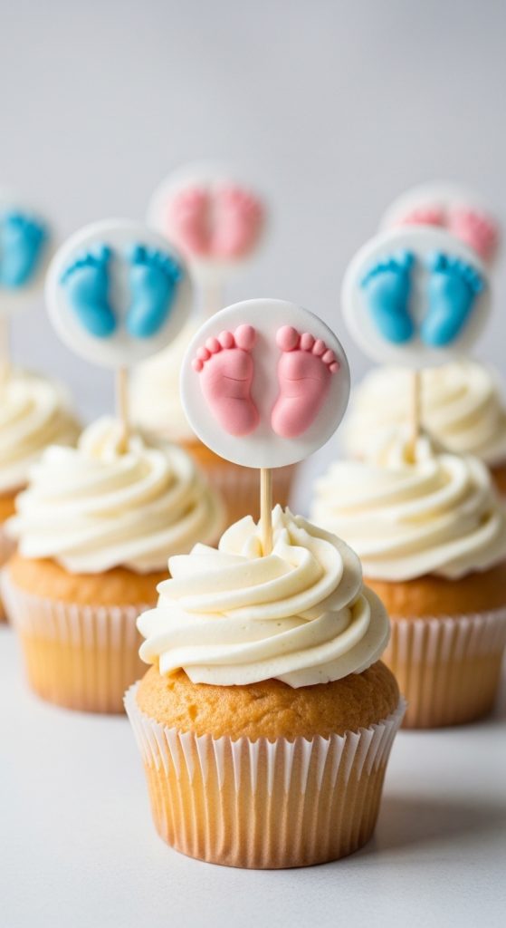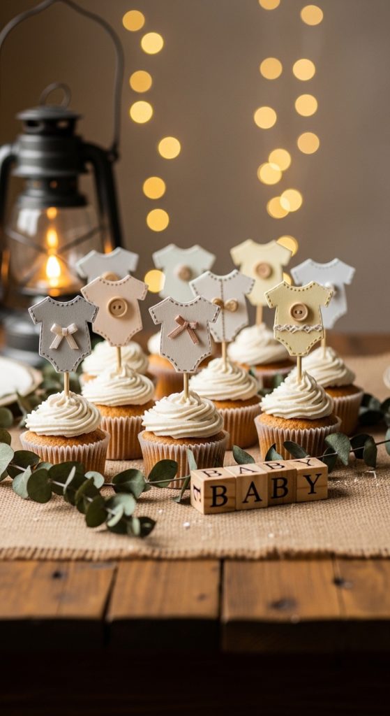 Onesies are a classic baby symbol, and when turned into cupcake toppers, they look irresistibly cute. These toppers can feature phrases like “Baby Loading,” “Coming Soon,” or simple patterns in gender-neutral colors.