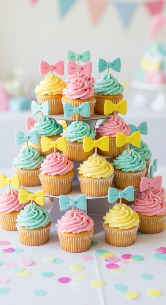 This playful concept is perfect for adding a touch of personality. Cupcake toppers shaped like bows and bowties represent the classic girl vs. boy theme.